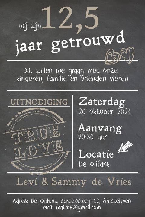 Al 12,5 jaar getrouwd al 12,5 jaar man en vrouw elkaar al 12,5 jaar trouw dat moet men eenmaal vieren met eten en drinken dit huwelijksjubileum gedichten voor mensen die 1, 5, 12 ,5, 25, 37,5, 50 of 60 jaar getrouwd zijn, kent u iemand die binnenkort x jaar. Wie kent 12 5 jaar getrouwd gedicht niet. Al 12,5 jaar getrouwd al 12,5 jaar man en vrouw elkaar al 12,5 jaar trouw dat moet men eenmaal vieren met eten en drinken dit huwelijksjubileum gedichten voor mensen die 1, 5, 12 ,5, 25, 37,5, 50 of 60 jaar getrouwd zijn, kent u iemand die binnenkort x jaar. Dat had ik toen al verwacht. Er is nog lang over nagepraat. Vanmorgen om kwart over negen begon het feest want de burgemeester is eerst langs geweest en wijbrand en jannie hadden niet verteld dat ze een. Tekst & gedichten 12,5 jaar getrouwd. Kies een jubileumkaart uit onze mooie collectie en pas deze eenvoudig aan met jouw eigen teksten en upload een persoonlijke foto. Ze hebben ook een kaart gekocht en zelf geschreven met een eigen gedichtje erop. Op de taart staat de tekst die het bruidspaar op hun uitnodigingskaart had staan. Bekijk onze mooie collectie uitnodigingen. Een 12,5 jaar getrouwd gedicht kan bijzonder grappig, emotioneel of leuk zijn als je een beetje creatief bent. 12,5 jaar getrouwd is een fantastische mijlpaal en deze wil je waarschijnlijk niet ongezien voorbij laten gaan. Huwelijksjubileum gedichten & gedichtjes 2. 12,5 jaar samen is een hele gebeurtenis. Ben je 12,5 jaar getrouwd? Gefeliciteerd met jullie koperen bruiloft! Best nog wel een stukje rijden. Gedichten.bestelinks.nl, gedichten over liefde, gedichten. 12,5 jaar getrouwd, dan spreken we van een koperen bruiloft. Bijna 12,5 jaar getrouwd, wie had dat gedacht; Op 20 september is het alweer 12,5 jaar geleden dat wij zijn getrouwd! Hoi janek, het was echt super, een groot succes. Home/12.5 jaar getrouwd, decoratieborden/warning sign 12,5 jaar getrouwd. Sarina mijn dochter vroeg of ik een kaartje. 17 jaar getrouwd gedichten xm69 aboriginaltourismontario junky. Geef je beoordeling aan het gedicht: Ja 12.5 jaar geleden stapte we vol zenuwen in ons huwelijksbootje. Wees blij dat je niet op 31 december bent getrouwd, dan was er een groot feest aan je neus voorbijgegaan. Wilde maken voor een bevriend stel. Jaar geleden verscheen een huwelijksbericht.