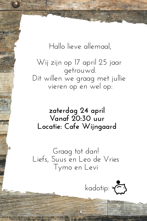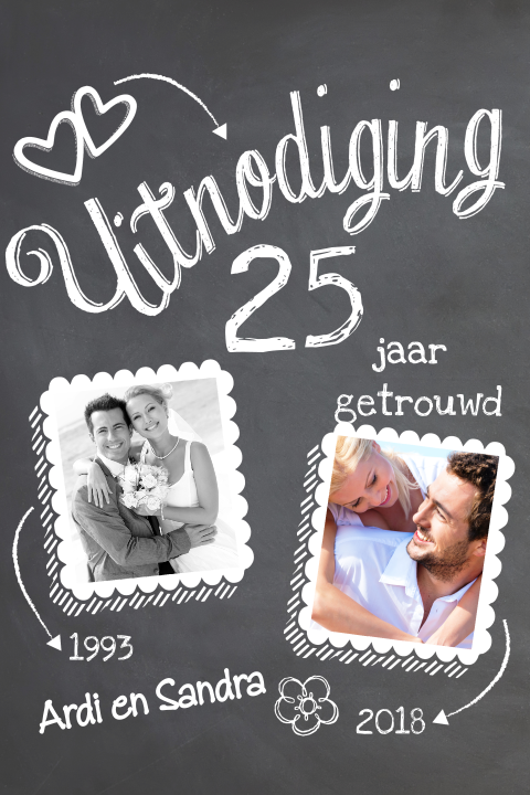 Geef een reactie reactie annuleren. Uitnodiging 25 jaar getrouwd in boom gekerfd. Trendy design met confetti in pastelkleuren en mooie lettertypes.