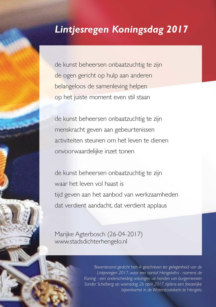 Het is vandaag een bijzondere dag en daarom dit gedicht.