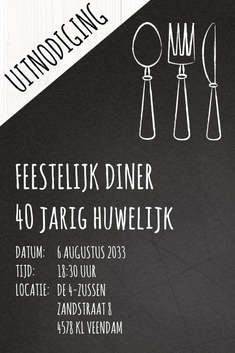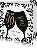 Een bijzonder moment en een mijlpaal waar ze trots op mogen zijn. Stijlvolle uitnodiging voor een 40 jarig huwelijk. Met hippe elementen zoals proostende cocktailglazen en een grote & teken.