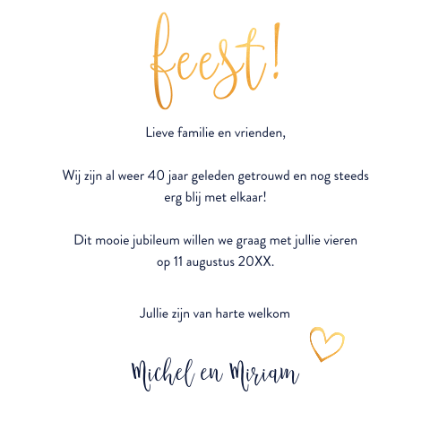 Spreuk jubileum voor op tegeltjes en andere leuke producten. Tekst voor uitnodigingskaartjes 40 jaar getrouwd.