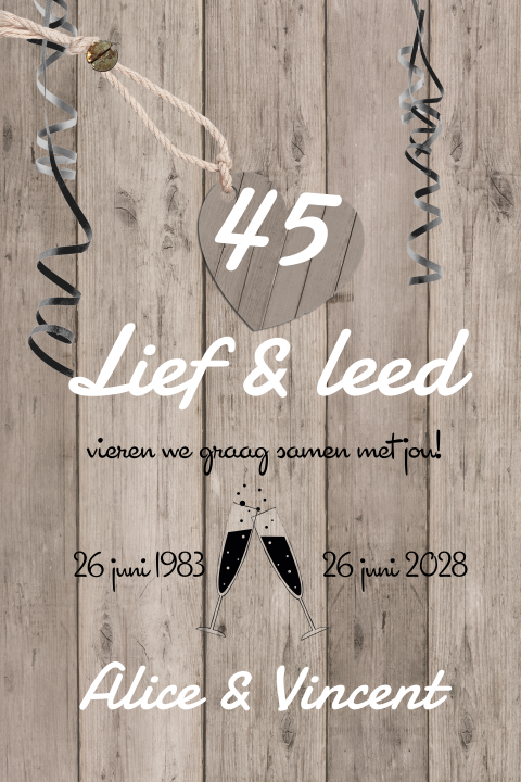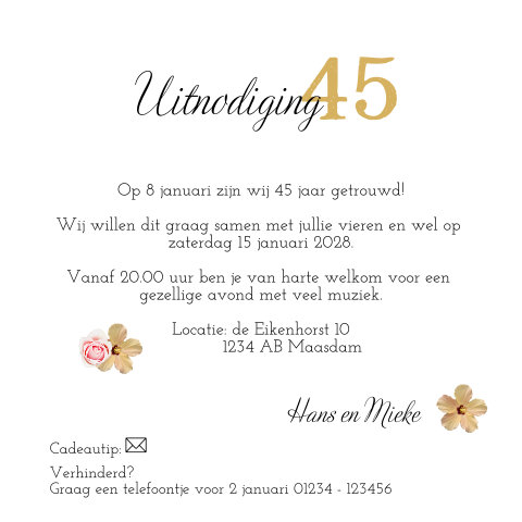 Uitnodiging 45 Jaar Getrouwd Met Sierlijke Bloemen from fuif.nl