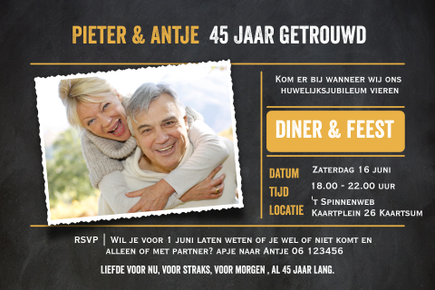 Er zijn namelijk een aantal manieren waarop je 50 jaar getrouwd uitnodigingskaarten de traditionele manier vinden veel mensen toch het leukst; Kies je design en maak je unieke kaart!