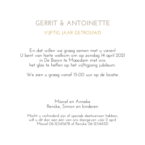 Nodig je al je familie, vrienden en kennissen uit? 50 jaar getrouwd gouden bruiloft bruidspaar gedichten.