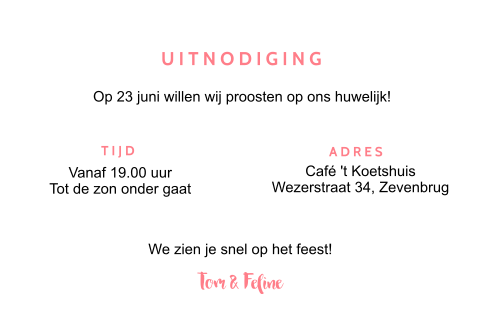Wij zien jullie graag op 17 december, groetjes gerard en jacqueline. Vind de perfecte tekst voor op je uitnodiging! In de derde persoon deze keer, dus voor het geval je een uitnodiging voor je vader en moeder maakt bijvoorbeeeld.