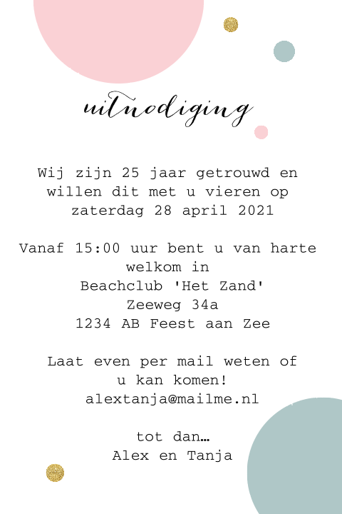 Hun bijzonderheden, eigenaardigheden, levensperikelen en kwaliteiten. Kies je design en maak je unieke kaart! Jan en henriëtte 25 jaar getrouwd.
