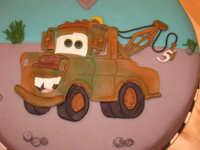 Het was een 26cm taart, gevuld met zwitserse room en. Eindelijk was het zover, deze ontbrak nog in m'n kindertaarten collectie, een cars taart.