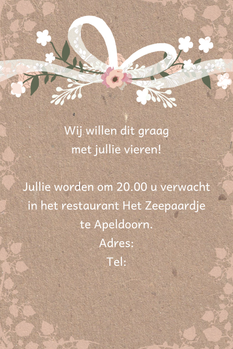 Liefde is warmte, liefde is echt. Moet jij een kerstgedicht maken en kun je wel wat hulp gebruiken? De tekst heb ik uitgeprint. Allemaal heeft het zeker nodig voor het activiteiten deze ze alle dag nodig hebben. Al vijftig jaar van je leven breng je door met die ene. Een 50 jarig huwelijk is niet zomaar iets. Het huwelijk is een erg feestelijke aangelegenheid en verdiend daarom ook een mooie felicitatie. Hoi meiden, hier een kaartje op bestelling voor een 50 jarige bruiloft. 50 jaar getrouwd huwelijkswensen en mooie teksten: Vanmorgen heb ik een foto van de kaart gemaakt en, doorgemaild. De viering van de 50ste huwelijksverjaardag is de viering van de liefde, het vertrouwen, de samenwerking, de. Ook leuk om een mooie spreuk in combinatie met een bos bloemen te bestellen! Hieronder vind je namelijk de leukste selectie met cadeaus voor een huwelijkspaar die binnenkort hun 50 jarig huwelijk vieren. Gemaakt voor een 50 jarig huwelijksdag. Als je jarig bent krijg je van mij zoek je een leuke, lieve of romantische tekst voor op een huwelijkskaart? Vrolijke uitnodiging voor een 50 jarig huwelijksjubileum. Met hartjes, ballonnen en plaats aan de binnenkant om een foto te plaatsen. Bekijk hier de 25 jarig huwelijk teksten voor op een kaartje. Een 25 jarig huwelijk is zeker een kaartje waard en op dit kaartje moet dan ook een leuke tekst komen te staan die over een 25 jarig huwelijk gaat. Ik heb al een account. Liefde is voor twee mensen die zielsveel van elkaar houden twee mensen met elk een gouden hart liefde met passie en. Een halve eeuw samen tijd voor een gigantisch feest proficiat met deze gouden relatie jullie zijn een prachtig paar. Liefde is eindeloos, puur en oprecht. Al vijftig jaar van je leven breng je door met die ene speciale persoon. Kroonschild met tekst hulde aan het 50 jarig echtpaar 4998 106. Dit kindje mag je tekst kaart 50 jarig huwelijksfeest gaan voeden. Spreuk 50 jarig huwelijk, leuke spreuken in een groot overzicht. Alweer bijna twee weken geleden waren goede kennissen van ons 50 jaar getrouwd. Bekijk de populaire huwelijkskaarten >>. Tegenwoordig zitten jullie samen in een verpleeghuis. Zoals ze tekst 50 jarig huwelijkskaart betoveren met hun zachte geuren.