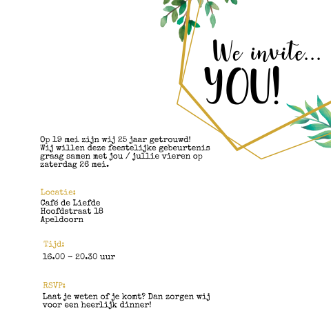 Dan zit je hier goed. Zeker zijn ze dus aanwezig want jullie zijn al 25 jaar getrouwd.