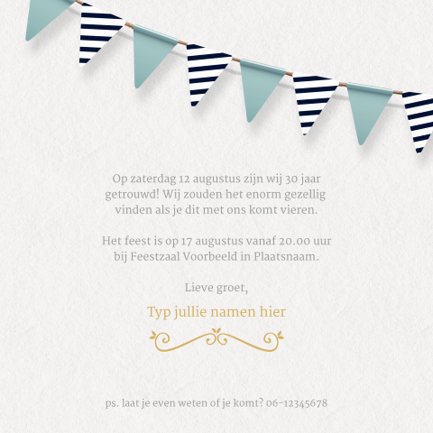 Maak voor jullie speciale huwelijksverjaardag een leuke, hippe en vooral originele uitnodiging met de pas je kaart aan.