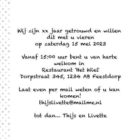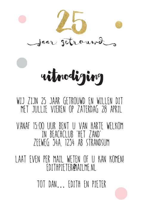 Stuur dan je uitnodigingen voor het 25 jarig huwelijksfeest op.