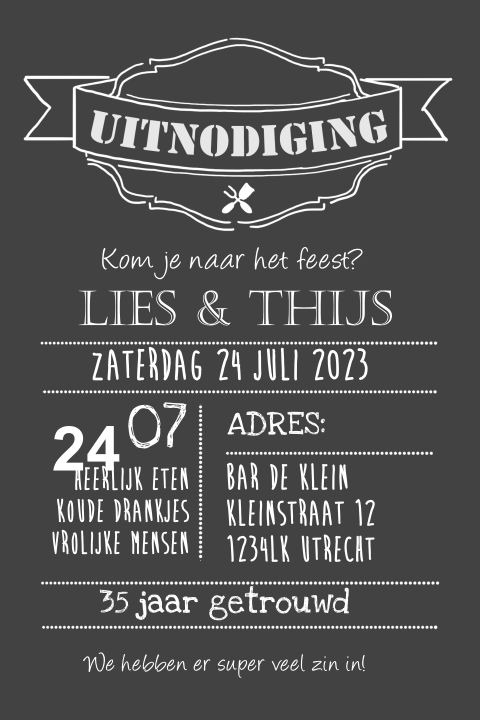 Hippe en stijlvolle uitnodiging voor jullie 12,5 jarig jubileum. Nodig vrienden en familie uit voor een bijzonder huwelijksjubileum. | proefdruk 1 25 jaar getrouwd.