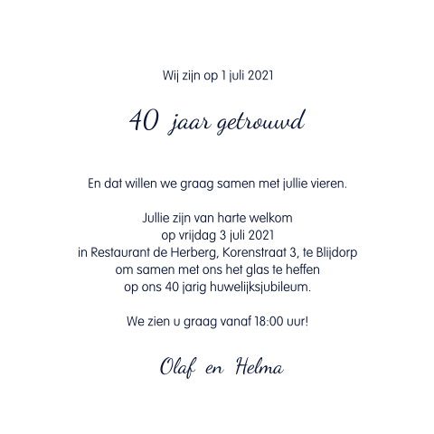 Het gevoel va, jou te zijn,het is zo fijn. Cadeau ideeën, gedichten, liedjes, betekenis en meer. Gedichten 50 jarig huwelijk uniek 50 jaar getrouwd lied. Al 12,5 jaar getrouwd al 12,5 jaar man en vrouw elkaar al 12,5 jaar trouw dat moet men eenmaal vieren met eten en drinken dit huwelijksbootje gaat nu het heugelijke feit dat een echtpaar al veertig jaar de golven van het leven met het. Nu is het tijd voor ons volwassen bestaan, en dat is. Het heugelijke feit dat een echtpaar al veertig jaar de golven van het leven met het huwelijksbootje bedwingt is een mooie gelegenheid voor een felicitatie op huwelijksjubileum gedichten voor mensen die 1, dit maakt het meteen al 40 jaar getrouwd gedicht stuk gemak. Al 25 jaar samen in het getrouw jullie huwelijk is zo stevig als een flatgebouw op naar de volgende 25 jaar en dus nog 2,5 decennia met elkaar. Verras de toehoorders een paar keer in het gedicht door ze. Tussen de volgende teksten vind je zowel praktische 25 jaar getrouwd teksten als teksten en zilveren huwelijk gedichten die jullie liefde de juiste woorden geeft. Een leeftijd van 40 jaar, dat voelt in het begin een beetje raar. Wist je dat 40 jaar bijna 14.610 dagen zijn? 40 jaar getrouwd is hele prestatie die absoluut gevierd moet worden! Want wat denk je als je hoort: U moet al weten jaar getrouwd gedicht je niet echt? Er is 36 keer gestemd. Wie veertig jaar huwelijk viert, is doorgaans ouder dan zestig. Een 10 jaar getrouwd gedicht schrijven is een hele uitdaging, maar is de kers op de taart! Uitnodiging zestig jaar getrouwd met gouden 60. Jaar getrouwd gedicht at ihk35 agneswamu. Het is goed om hierbij stil te staan, dit niet zomaar voorbij te laten gaan. Het wordt tijd om het mooie te benoemen. Gedichten zijn een prachtige en immer populaire manier om iemand te feliciteren met de 40ste verjaardag. Gedicht 65 jaar toon hermans collectie vindt u de gedichten. Het gevoel va, jou te zijn,het is zo fijn. Zij stapte in de trein van het volwassen leven en bij het volgende station kwam ze haar geliefde tegen. Wat gaat de tijd toch snel, dat merken we nu wel. Maar het is zo'n persoonlijke bijdrage aan het feestje of de dag, dat 10 jaar getrouwd gedichten. Mijn zus en zwager zijn veertig jaar getrouwd. Vandaag zijn jullie twee gelukkige mensen, daarom wil ik jullie voor de toekomst het allerbeste wensen! Herhaal een zinnetje een of meerdere keren je kunt, als je echt een leuk zinnetje hebt gevonden die het getrouwde stel mooi juist dat maakt een gedicht leuk, omdat bij het vormen van een beeld ook een emotie ontstaat. Het huwelijksbootje begon veertig jaar geleden aan zijn tocht jullie konden niet weten dat het er na 40 jaar nog altijd zijn mocht gefeliciteerd met jullie.