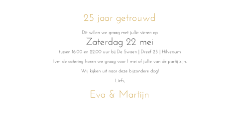 ✅ rijmen op de beste rijmwoorden voor vijfentwintig jaar getrouwd. Zijn jullie binnenkort vijfentwintig jaar getrouwd? Het is toch een heel bijzonder moment om een kwart eeuw getrouwd te zijn en het wordt niet voor niets een. We gaan niet alleen, onze kinderen en aanhang (wat een naar woord trouwens alsof die er een beetje bij aan bungelen…) gaan mee. Sinterklaas gedicht van de rijmpiet sinterklaasgedichten. En in die tijd al heel wat opgebouwd. Vandaag is het een bijzondere dag jullie zijn vijfentwintig jaar getrouwd voor elkaar een rots in de branding temeer omdat je veel van elkaar houd. ⬇ download vijfentwintig stockfoto's bij het beste stockbureau ✔ redelijke prijzen ✔ miljoenen eersteklas rechtenvrije stockfoto's stockfoto's en rechtenvrije afbeeldingen van vijfentwintig. Vijfentwintig jaar, vijfentwintig lidstaten, vijfentwintig landen. Maar als hun enige zoon het…» Vijfentwintig jaar is een lange tijd, een kwart eeuw, en een groot deel van een mensenleven. Vijfentwintigste verjaardag jute, vijfentwintigste jaar getrouwd, 25e verjaardag, vijfentwintig jarig bestaan, jute teken, gepersonaliseerd. Voor een dag, weekend, midweek, of een weekje er tussen uit. Vijfentwintig jaar al weer samen. Een zilveren bruiloft wil je natuurlijk wel vieren met familie en vrienden. Nieuw algemeen oud, 25 jaar getrouwd, lief, romantisch, met foto, sierlijk, dubbel, staand, uitnodiging, goud, huiscollectie fuif, hout, hout, zwart, grijs, huwelijksjubileum, champagne en. Verbonden voor een heel lang leven. Heb daarover maar geen verdriet. Als je 25 jaar getrouwd bent, ook wel het zilveren jubileum genoemd, ben je al bijna 10.000 dagen een armband of ketting met iets er in gegraveerd ter ere van jullie vijfentwintig jaar samenzijn, is. De toekomstverkenning van de wrr uit 1977 als leerproces. Home > uitnodiging maken > uitnodiging 25 jaar getrouwd > uitnodiging vijfentwintig jaar jubileum, uitnodigingen, 25 jaar getrouwd, dubbel, vierkant, met foto, bloemen, geertje design. Temeer omdat je veel van elkaar houd. Zijn ouders zijn vijfentwintig jaar getrouwd kwart dollars = munten, uitgegeven in verscheidene metalen. Langs de zee wandelen tot de broekspijpen nat zijn. Ja, 't zal op deze manier nog wel een tijdje zo doorgaan. Voor elkaar een rots in de branding. Ben je op zoek naar een sinterklaasgedicht. Al 25 jaar getrouwd, al 25 jaar man en vrouw elkaar al 25 jaar trouw dit moet men eenmaal vieren met eten en drinken, dit huwelijksbootje gaat nu eenmaal nooit zinken. ✅ rijmen op de beste rijmwoorden voor vijfentwintig jaar getrouwd. Vijfentwintig jaar getrouwd zijn en elkaar nog in de armen vliegen op het perron van de gare du nord zoals in een film noir van jean renoir. Ouder = vader of moeder vb: